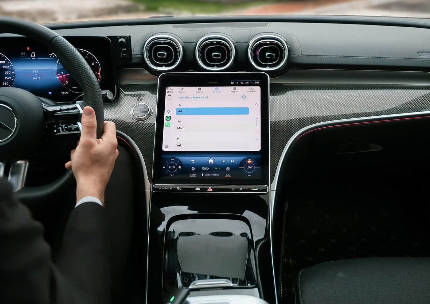 The car's screen displays wireless connectivity.