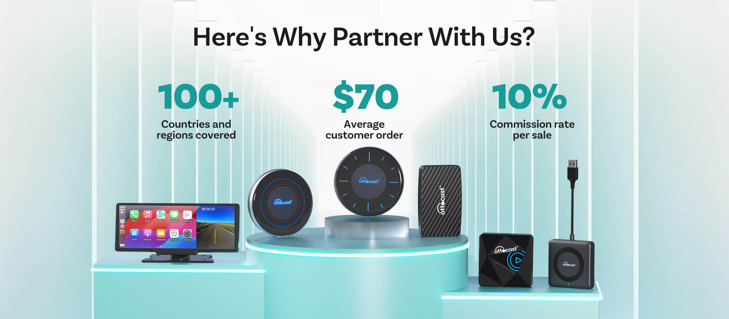 لدينا عدة برامج للتسويق بالعمولة: برنامج Goaffpro الرسمي من Ottocast، ومنصات شركائنا AWIN لتسويق المؤثرين. اختر ما يناسبك وابدأ شراكتك معنا الآن!