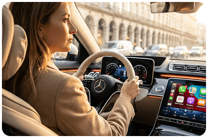 ستشعر وكأن سيارتك أصبحت أحدث فور ظهور تطبيقاتك لاسلكيًا. تغيير بسيط… لكنّه يرفع مستوى كل رحلة ويجعل التجربة أرقى.