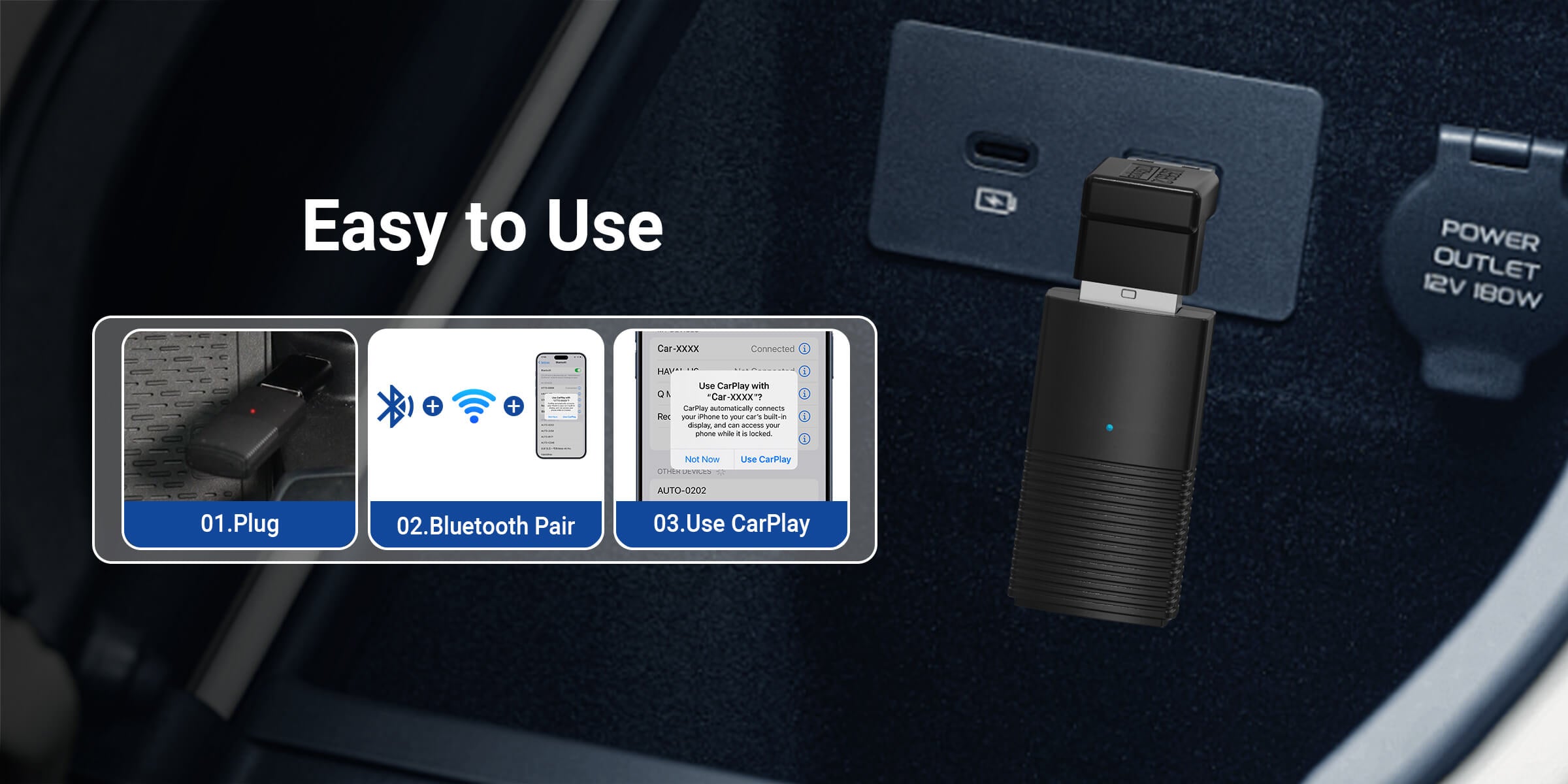 تحويل CarPlay/Android Auto السلكي إلى لاسلكي